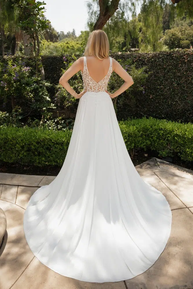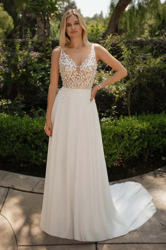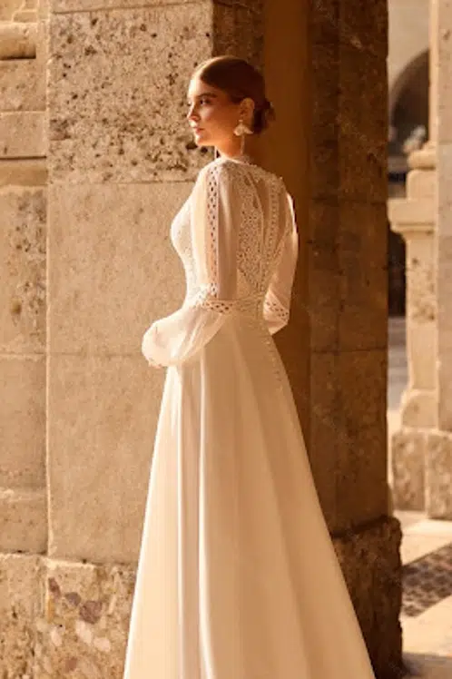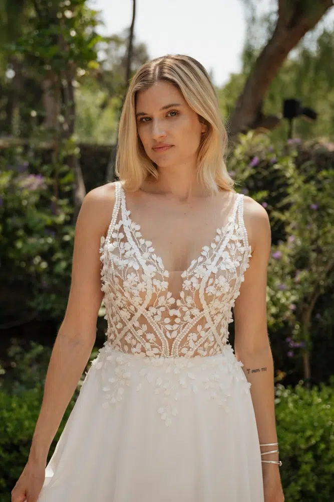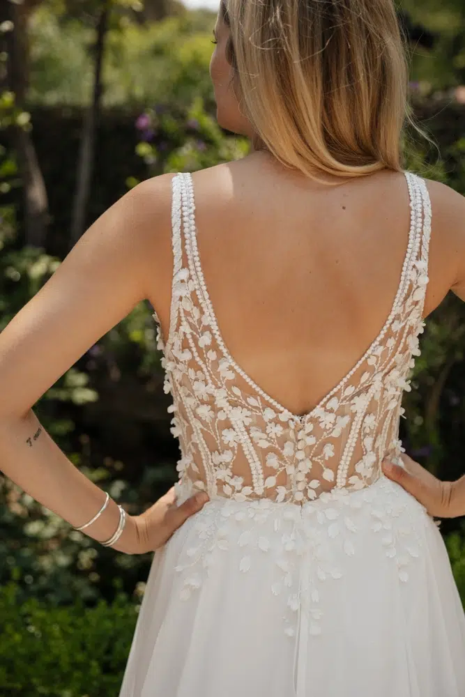 Anders als klassische Brautkleider setzen Boho-Designs auf luftige Schnitte, die viel Bewegungsfreiheit bieten. Besonders beliebt sind A-Linien-Kleider oder romantische Zweiteiler, die einen entspannten und zugleich stilvollen Look kreieren. Aber auch Fit & Flair-Liebhaberinnen kommen in diesem Stil nicht zu kurz.